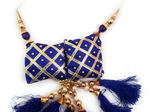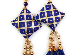 Women’s Ethnic Lehenga Golden and Fabric Pearl Latkan Hanging Tassel (Blue) – Set of 2