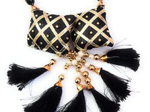 Women’s Fabric Hand Made Work Golden and Black Pearl Ethnic Lehenga Hanging Tassel and Latkan, Set of 2