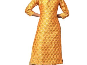 Women’s Ethnic Motifs Woven Cotton Silk Straight Kurta – Yellow(S)