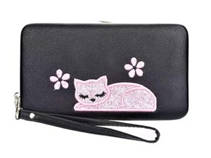 Women’s Faux Leather High Capacity Clutch/Wallet (Black Cat)