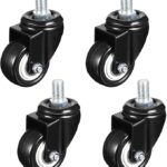 Caster Wheels Screw Threaded Stem Caster Type with Without Brakes Soft Rubber Swivel Caster with 360 Degree Top Plate, Double Bearing 330lb Total Load Capacity, Pack of 4