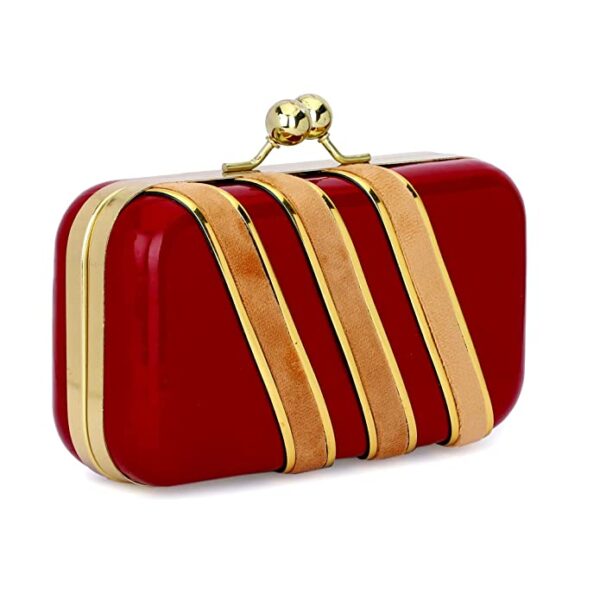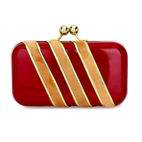 Handicraft Beautiful Bling Box Clutch Bag Purse For Bridal, Casual, Party, Wedding Maroon N Gold
