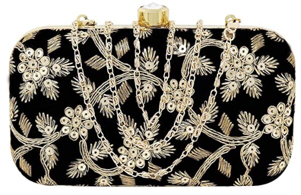Women’s Box Clutch Purse Bag with sling chain Black