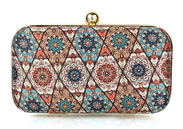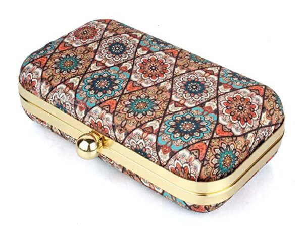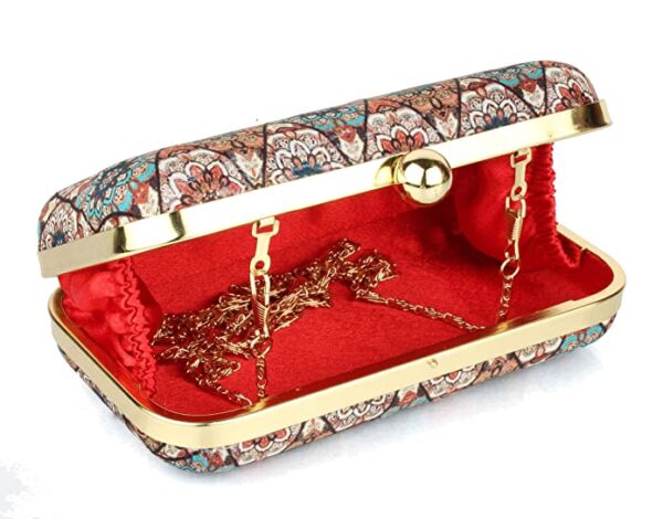 Bag has a self locking spring lock and a detachable gold polish shoulder chain.