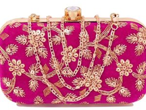 Women’s Box Clutch Purse Bag with sling chain Pink