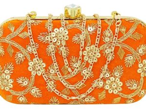Women’s Box Clutch Purse Bag with sling chain Orange