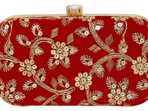 Women’s Box Clutch Purse Bag with sling chain Red