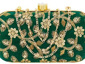 Women’s Box Clutch Purse Bag with sling chain Green