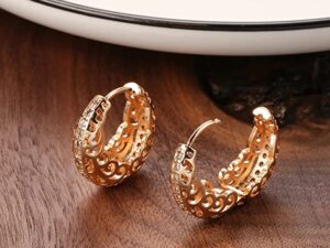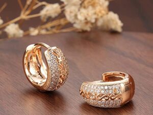 18k Rose Gold Plated Latest Fancy Stylish Copper Zircon Bali Earrings for Women and Girls